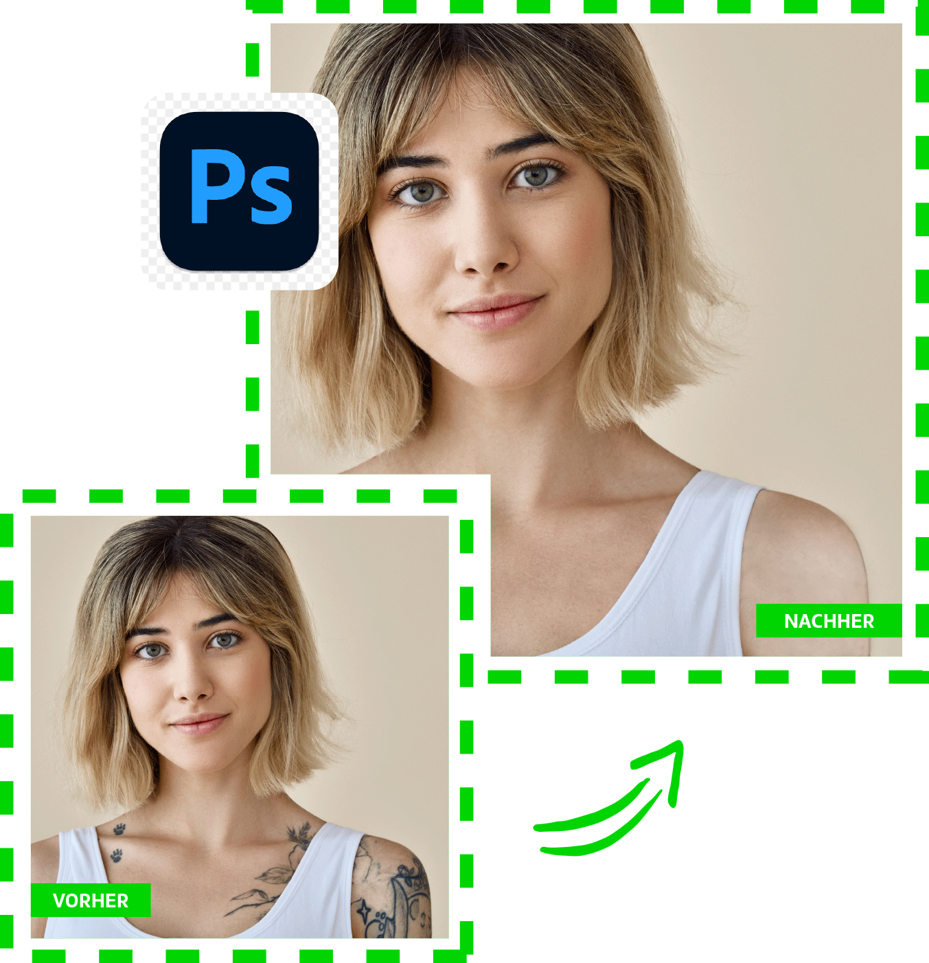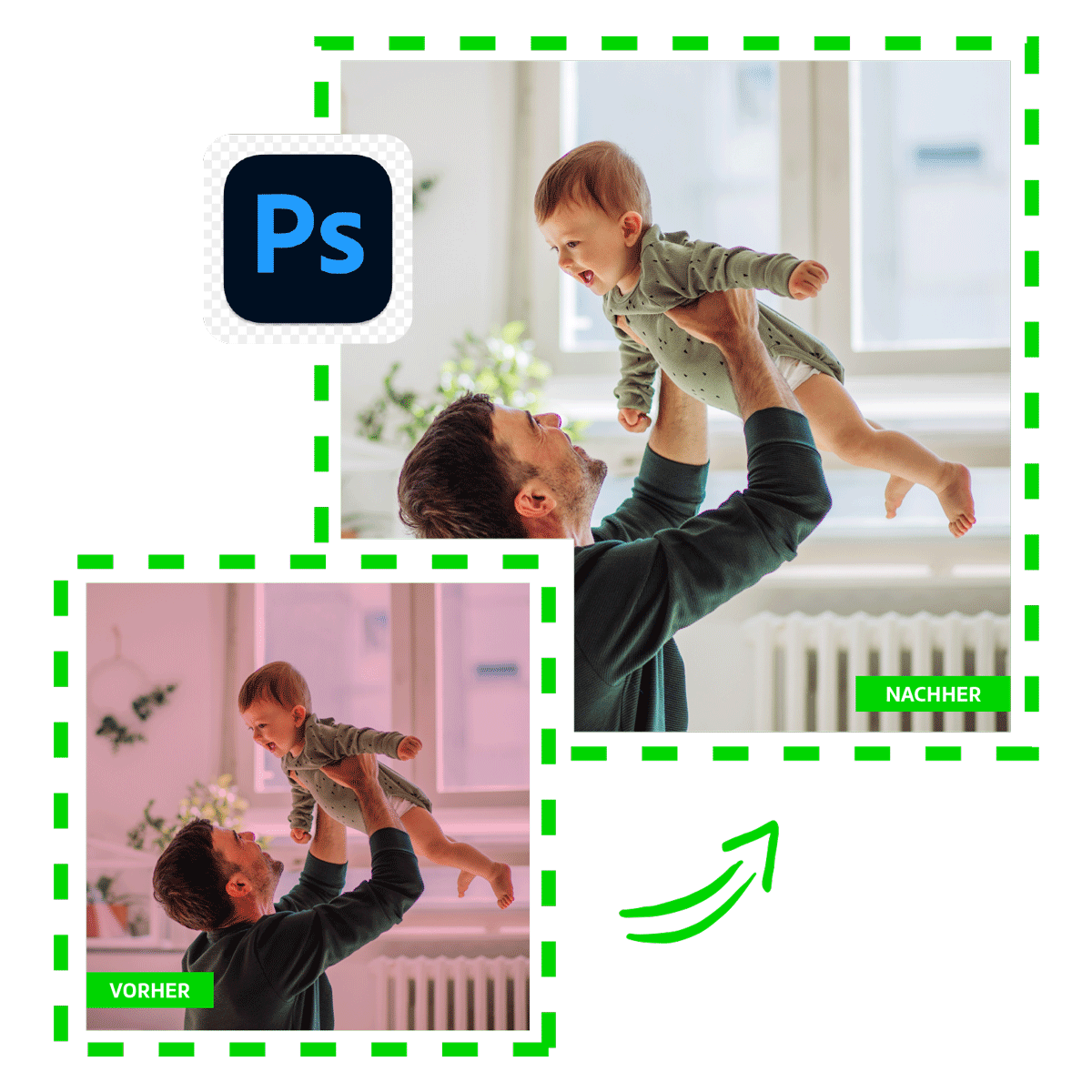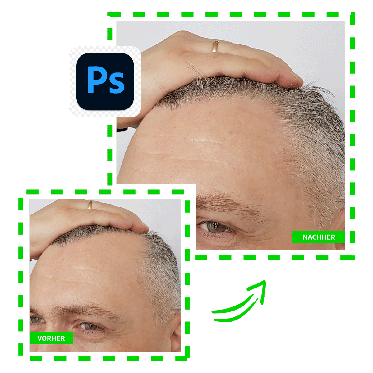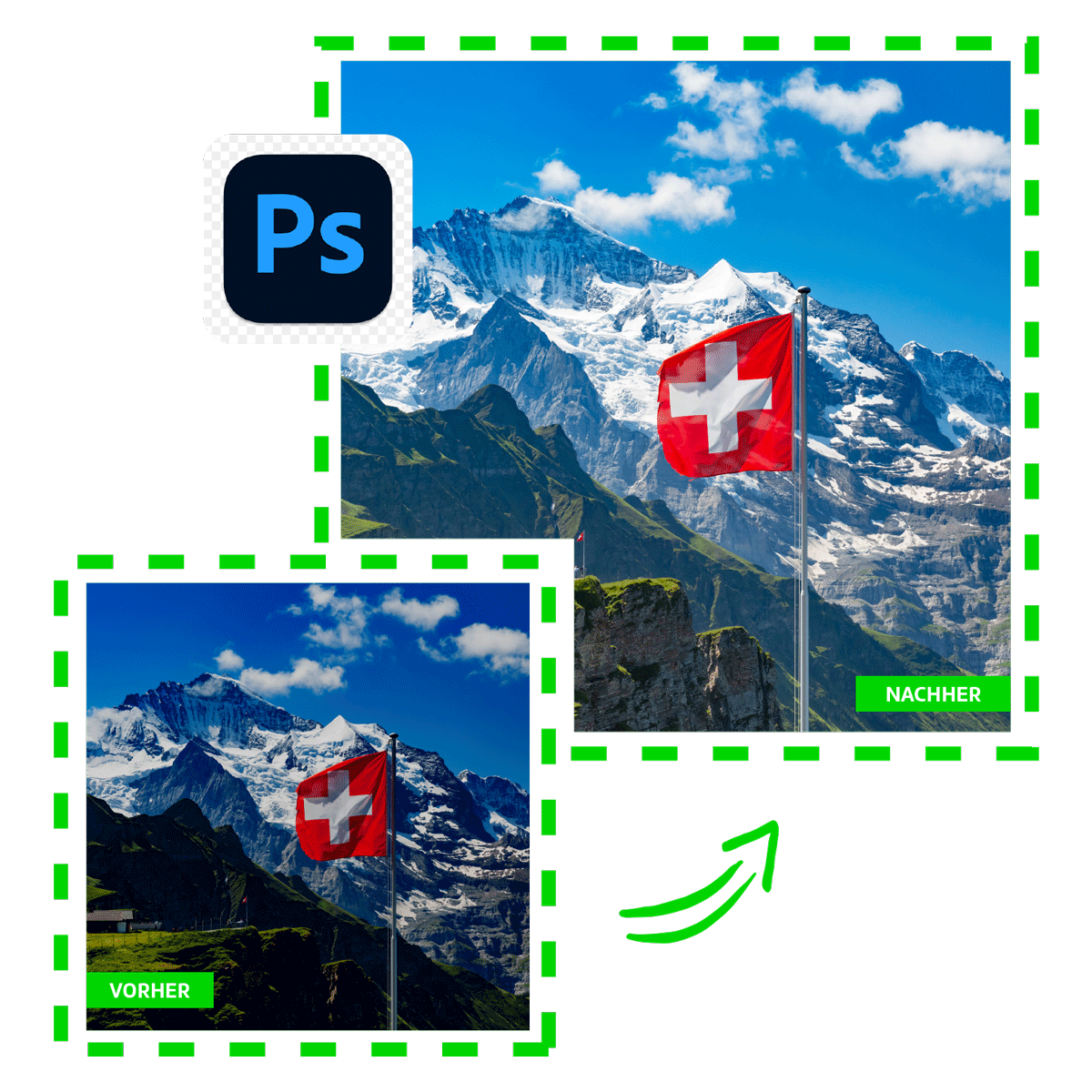 Konkret nehmen wir uns eines Aspektes oder Problems in dem Bild an und korrigieren diesen. Hat das Bild gleich mehrere Schwachstellen, bietet es sich für dich an, eine vollkommen unverbindliche Offerte von uns einzuholen. So bekommst du einen besseren Überblick über das Gesamtausmass und hast innerhalb von 24 Stunden klare Verhältnisse, was den Umfang der Bearbeitung angeht.