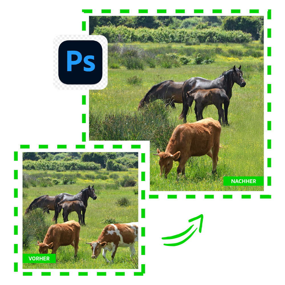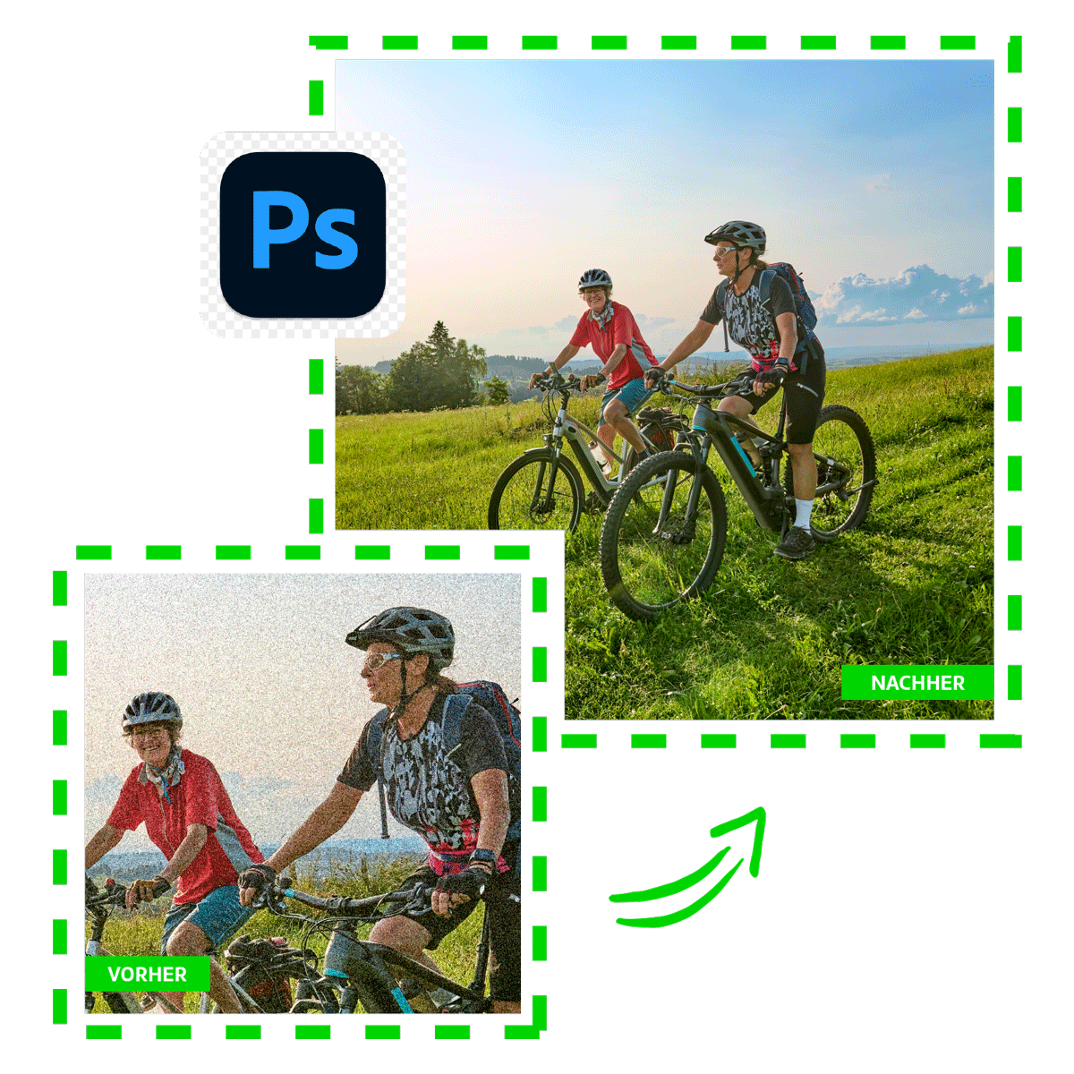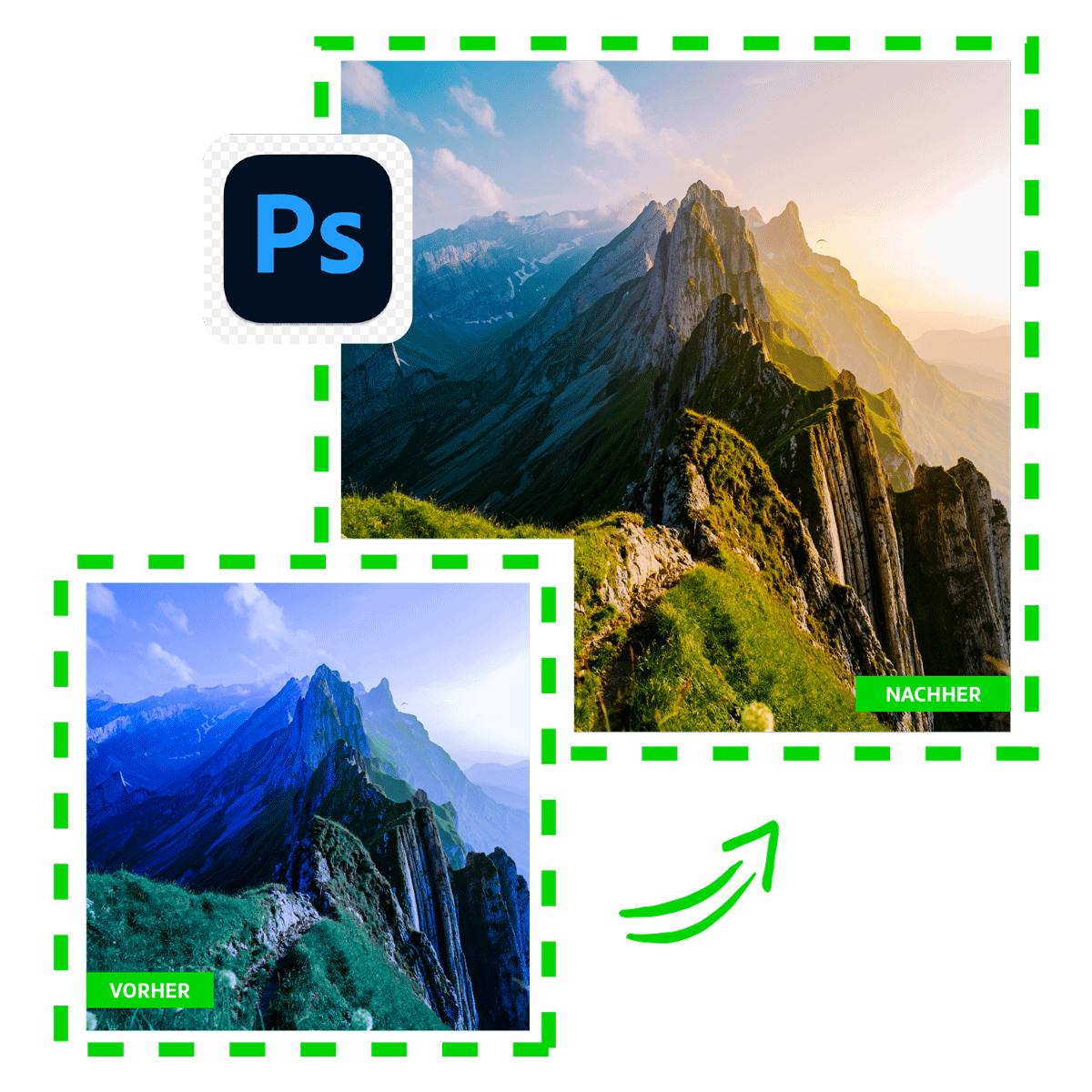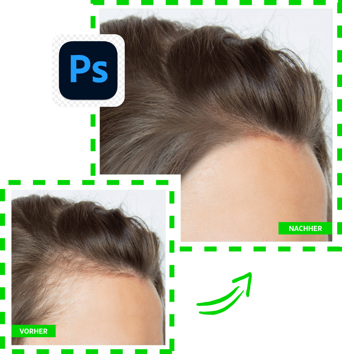 Konkret nehmen wir uns eines Aspektes oder Problems in dem Bild an und korrigieren diesen. Hat das Bild gleich mehrere Schwachstellen, bietet es sich für dich an, eine vollkommen unverbindliche Offerte von uns einzuholen. So bekommst du einen besseren Überblick über das Gesamtausmass und hast innerhalb von 24 Stunden klare Verhältnisse, was den Umfang der Bearbeitung angeht.