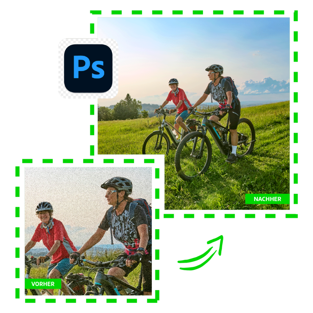 Bildrauschen kann die QualitĂ€t eines Fotos stark beeintrĂ€chtigen, besonders bei Aufnahmen in schwachem Licht oder mit hohen ISO-Werten. Unser professioneller Photoshop-Service reduziert Bildrauschen prĂ€zise und bewahrt gleichzeitig die wichtigen Details, sodass Ihre Fotos scharf und klar erscheinen – ideal fĂŒr Nachtaufnahmen, Portraits und besondere Momente.
