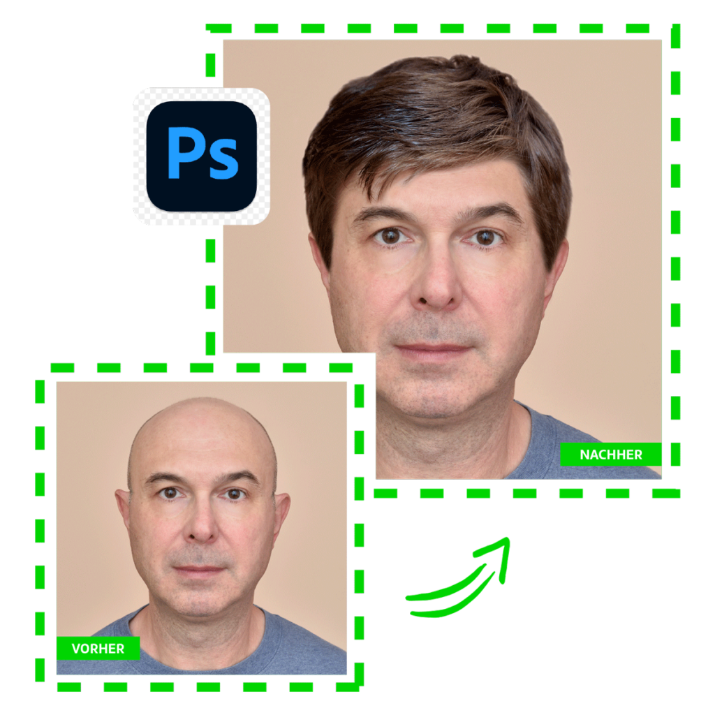 Unser Photoshop-Service zur Glatzenkorrektur umfasst:
