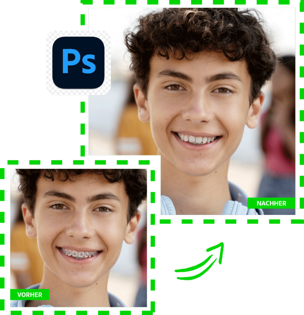 Unser Photoshop-Service zur Zahnspangenentfernung umfasst: